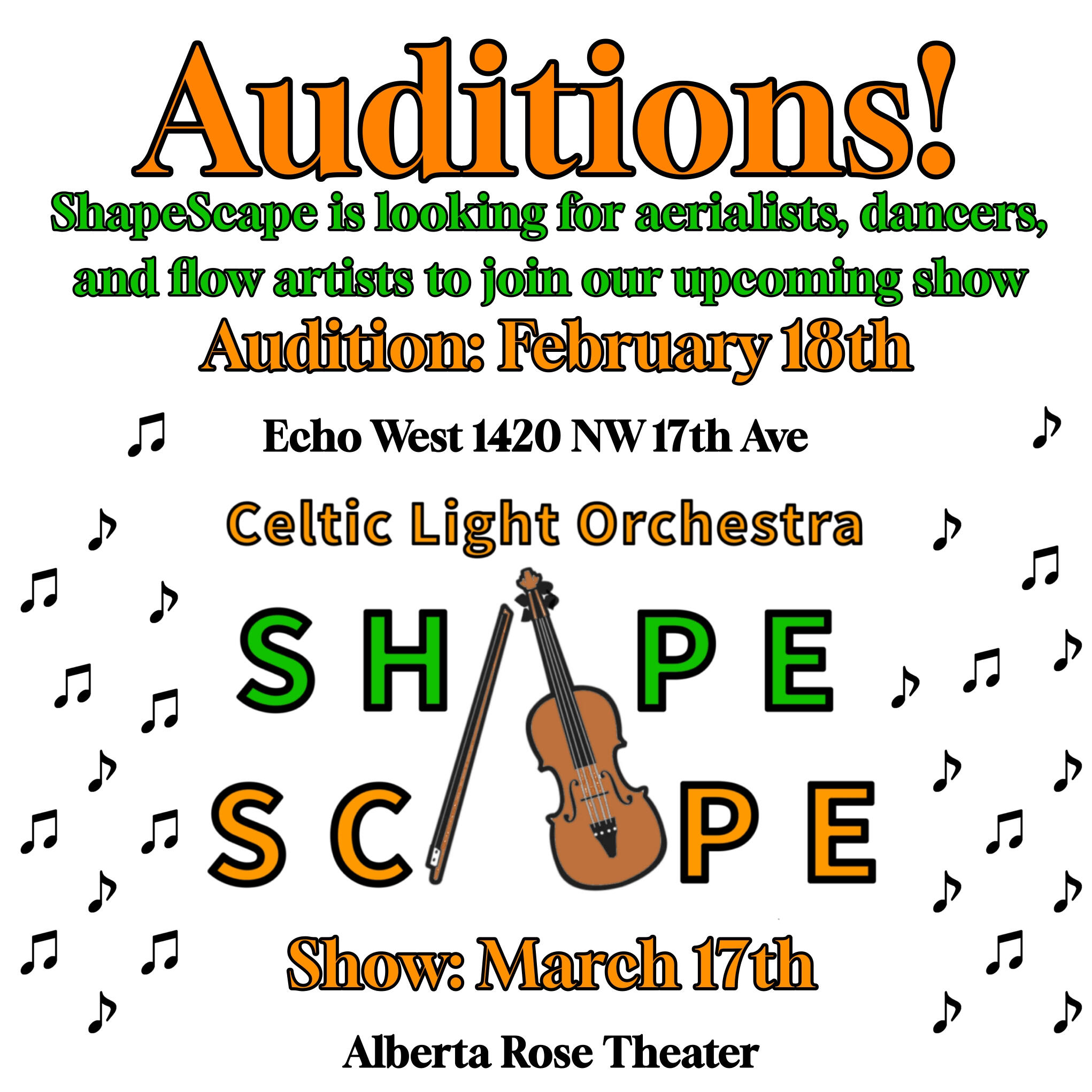 Auditions are February 18th at Echo West from 2-4pm.